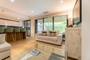 La zona de descanso incluye tres dormitorios, todos exteriores. El dormitorio principal cuenta con baño en suite, mientras que los otros dos comparten un segundo baño completo.