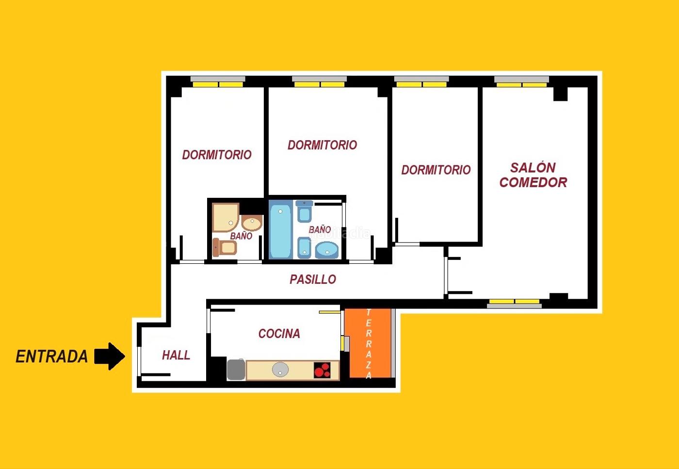 Es un piso de 78, 30m. útiles muy luminoso, totalmente exterior y soleado.