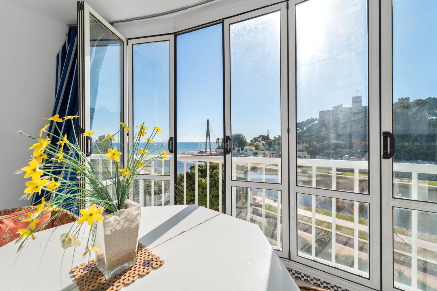 La vivienda, de 118 m², cuenta con 3 dormitorios dobles, grandes y luminosos y con armarios empotrados, 2 baños completos (uno en suite), salón independiente, cocina con barra americana y cuarto lavadero, suelos de mármol y orientación oeste. Destaca su impresionante terraza semicircular de 20 m², completamente privada, con cierre abatible y toldo de cortina, perfecta para disfrutar durante todo el año y, lo más impactante, las vistas: el brillante Mar Mediterráneo, una panorámica excepcional del histórico Castillo Sohail, auténtica fortaleza Árabe construido en el año 956 por orden del califa cordobés Abderramán III, el río Fuengirola con su parque fluvial, y la Sierra de Mijas. ¡Una panorámica única y asegurada para siempre, ya que frente al edificio no se puede construir nada!