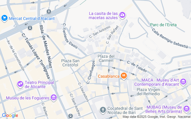Zonas: Benalúa, Alipark, San Blas, Florida, Ciudad de Asís, Carolinas, Campoamor, Altozano, Los Ángeles, Plà del Bon Repòs, Villafranqueza, San Vicente del Raspeig