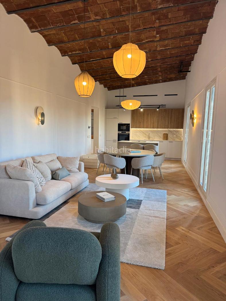 El piso, con 145 m² construidos, destaca por su luminosidad gracias a sus 5 balcones a la calle, techos altos con volta catalana restaurada y una reforma integral de diseño que combina materiales premium, estética contemporánea y el carácter clásico del Eixample.