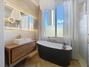 Desde el salón accedemos a la master suite, un espacio íntimo y elegante que cuenta con un baño privado equipado con bañera exenta y una amplia ducha. La propiedad dispone además de dos habitaciones individuales y un segundo baño completo con plato de ducha.