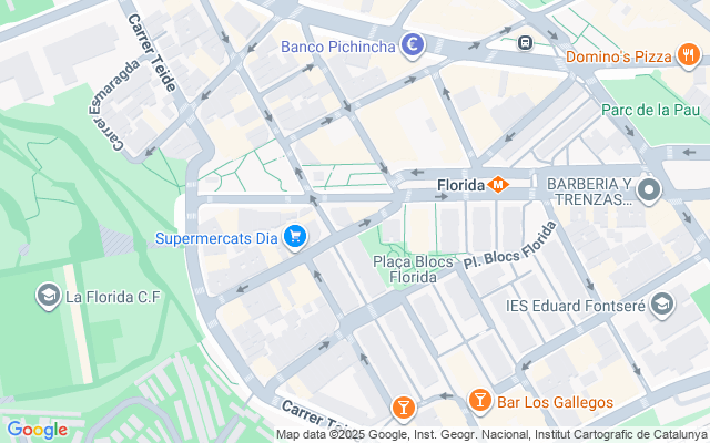 Este piso se sitúa en el barrio de La Florida, en el núcleo urbano de L´Hospitalet de Llobregat, una zona consolidada con una amplia oferta de servicios y buenas conexiones de transporte. Cuenta con acceso cercano a importantes vías de comunicación como la Ronda de Dalt (B-20) y la Gran Via de les Corts Catalanes (C-31), lo que facilita la movilidad hacia Barcelona y otras localidades cercanas. Además, dispone de una excelente red de transporte público, incluyendo estaciones de metro como Florida (L1) y Torrassa (L1 y L9S), así como varias líneas de autobuses urbanos que conectan con diferentes puntos de la ciudad.