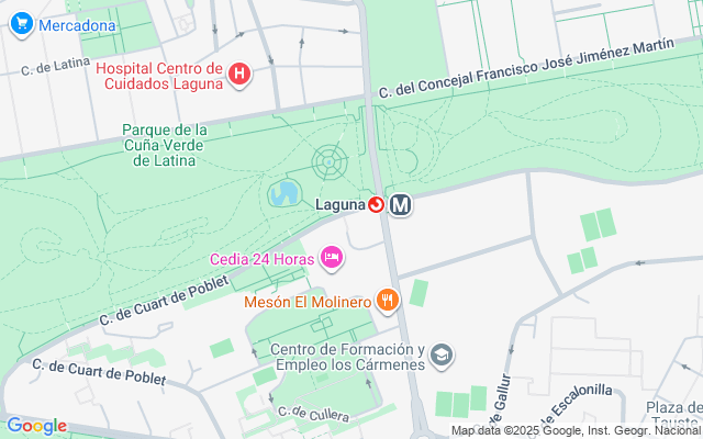 Ubicada en la calle Cuart de Poblet, en el distrito de Latina (Madrid capital), destaca por su excelente comunicación. Se encuentra a pocos minutos de las estaciones de Metro y Renfe Laguna (líneas 6 y C5) y cuenta con varias líneas de autobús (31, 55, 119, 158 y N18) con conexión directa a Plaza de España, Atocha e intercambiadores de Aluche y Príncipe Pío. Además, ofrece acceso rápido a Paseo de Extremadura, M-30 y A-5, facilitando los desplazamientos por toda la ciudad.