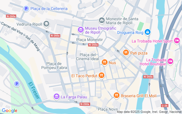 Entre los puntos de interés próximos destacan el Monasterio de Santa María de Ripoll, el Hospital Comarcal de Campdevànol, el Parque de la Devesa del Pla y el centro comercial Ripoll Centre.