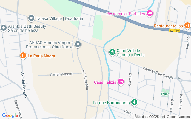 Utilizando las coordenadas de la propiedad, se puede calcular la distancia a la playa más cercana y el aeropuerto. La playa más cercana es Les Deveses, a unos 2,5 kilómetros, un lugar ideal para tomar el sol, nadar y practicar deportes acuáticos. El aeropuerto más cercano es el de Alicante-Elche, a unos 102 kilómetros, lo que garantiza unas cómodas opciones de viaje para vuelos nacionales e internacionales.