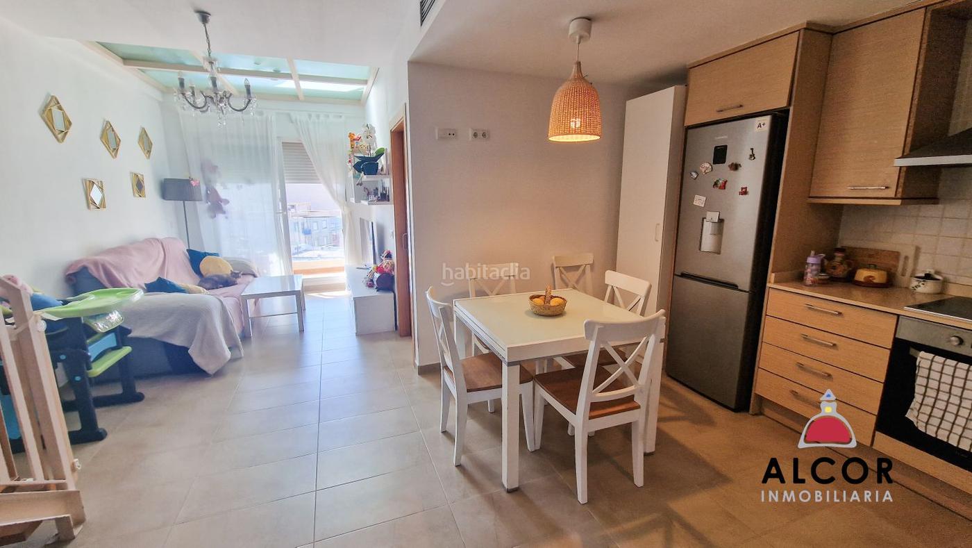 Atico en muy buen estado de dos plantas en Benicarlo, en la provincia de Castellón. La vivienda esta distribuida en la primera planta con un amplio comedor con cocina con barra americana con salida a un pequeño balcón. También hay una habitación doble y