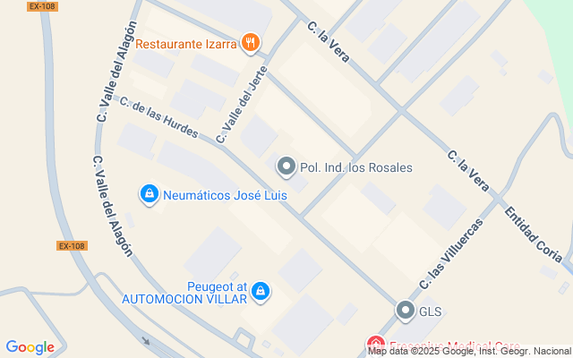 Nave industrial en el polígono Los Rosales de Coria-Cáceres. Superficie edificada: 630 m2. Patio: 60 m2. Tiene diversas dependencias: oficina, vestuarios, wc, sala de exposiciones, etc.