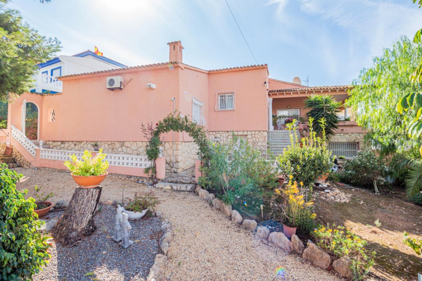 Magnifico chalet ubicado en una zona muy privilegiada del Albir. La propiedad se distribuye en una planta. La vivienda consta de 2 habitaciones, con 2 baños completos en suite, un aseo de cortesía, además de, un amplio salón-comedor y una cocina independiente. También cuenta con un pequeño despacho, y de un garaje el cual tiene uso de zona de lavado. Tiene zonas de almacenaje y un patio interior. Cuenta con un sótano diáfano el cual es un apartamento totalmente independiente, con un dormitorio, un salón y un baño propio, además de un hall de entrada. La vivienda está equipada con aire acondicionado, calefacción central, chimenea, armarios empotrados, parking privado, piscina y trastero, además de, unas amplias zonas ajardinadas y barbacoa.