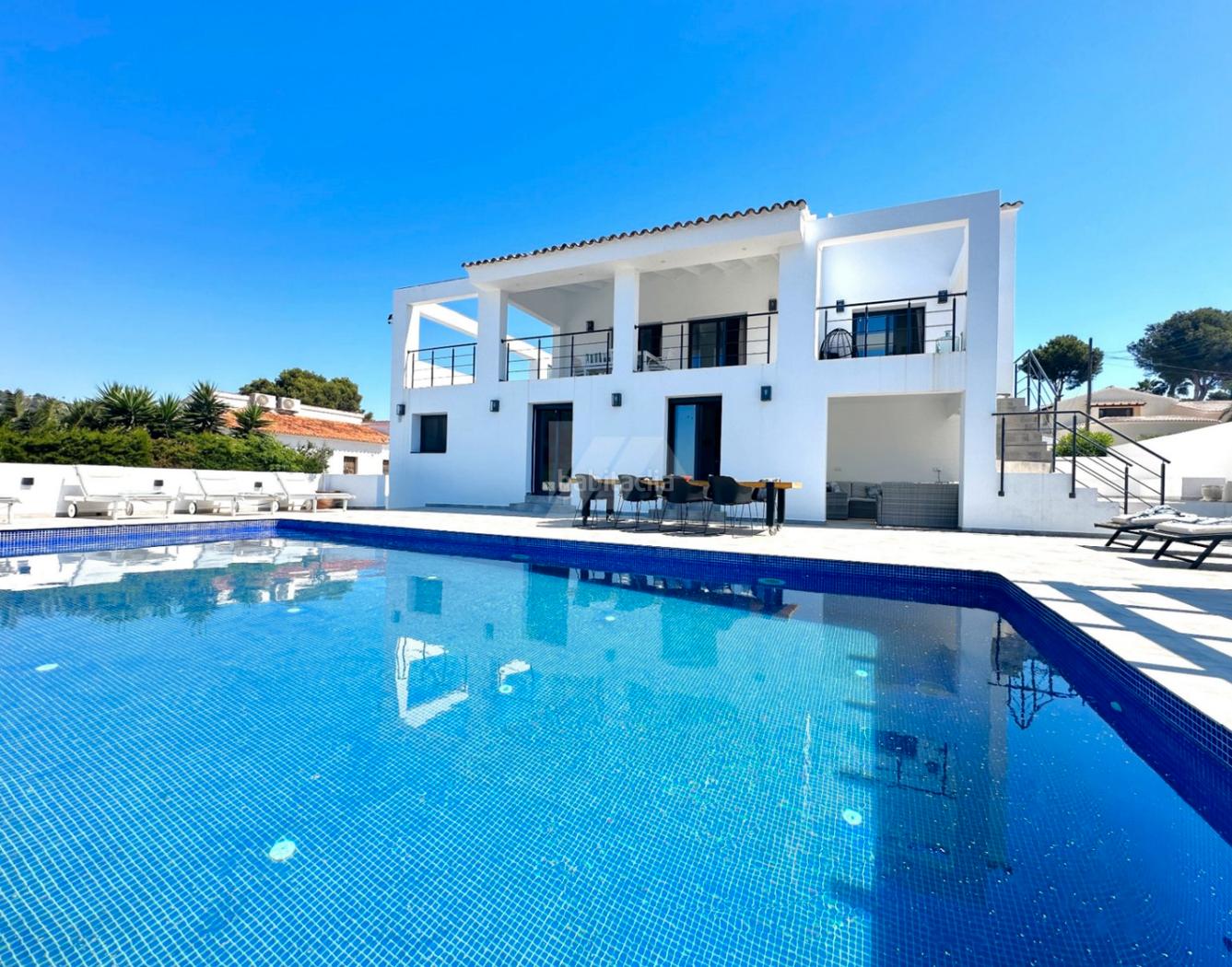 Villa exclusiva con piscina infinita, máxima exclusividad y confort.Descubre esta villa en venta ubicada en la prestigiosa urbanización San Jaime, Benissa, una de las zonas residenciales más exclusivas de la Costa Blanca. Esta propiedad única combina amplitud, privacidad y vistas al Peñón de Ifach y las montañas, a corta distancia del Club de Golf Ifach, así como de las playas y calas que ofrece la costa mediterránea, brindando el estilo de vida que buscas.880 m² de parcela y más de 250 m² construidosOrientación soleada y múltiples terrazas privadasPiscina infinitaÁrea de barbacoa y jacuzziAmplio aparcamiento privado para varios vehículosDistribución cómoda y funcional en dos plantasPlanta baja:En la planta inferior, encontramos tres dormitorios dobles, de los cuales dos tienen baño en suite. Además, hay un baño adicional con bañera central, un gran vestidor que tiene un gran potencial para convertirse en un cuarto dormitorio, y un amplio hall de entrada con escaleras que conducen al nivel superior.Planta superior:En la planta superior se abre un impresionante espacio abierto que integra salón-comedor, zona de estar y una cocina de diseño completamente equipada con electrodomésticos de alta gama. Grandes puertas correderas dan a una terraza con vistas despejadas, ideal para relajarse o disfrutar de comidas al aire libre.Espacios exteriores diseñados para el disfruteLa villa cuenta con varias terrazas alrededor de la casa, ofreciendo diferentes atmósferas dependiendo de la hora del día. En el lateral, hay una encantadora cocina de verano con baño y sofá cama, perfecta como área de invitados independiente. Justo al frente, una gran terraza con sofá exterior invita a la relajación en un entorno acogedor.Exclusividad y seguridad en San Jaime, BenissaLa urbanización San Jaime se destaca por su tranquilidad, belleza y vigilancia. Cuenta con un servicio de guardia/concierge, que añade un plus de seguridad y confort. Además, está muy bien conectada, cerca de playas, campos de golf, restaurantes, tiendas y servicios.Tu villa en Benissa te está esperandoSi buscas una villa con piscina en Benissa, con espacio para disfrutar en familia, vistas privilegiadas, y situada en una comunidad prestigiosa como San Jaime, esta es tu oportunidad. No te pierdas esta propiedad única en la Costa Blanca.Contáctanos hoy para más información o para programar una visita.