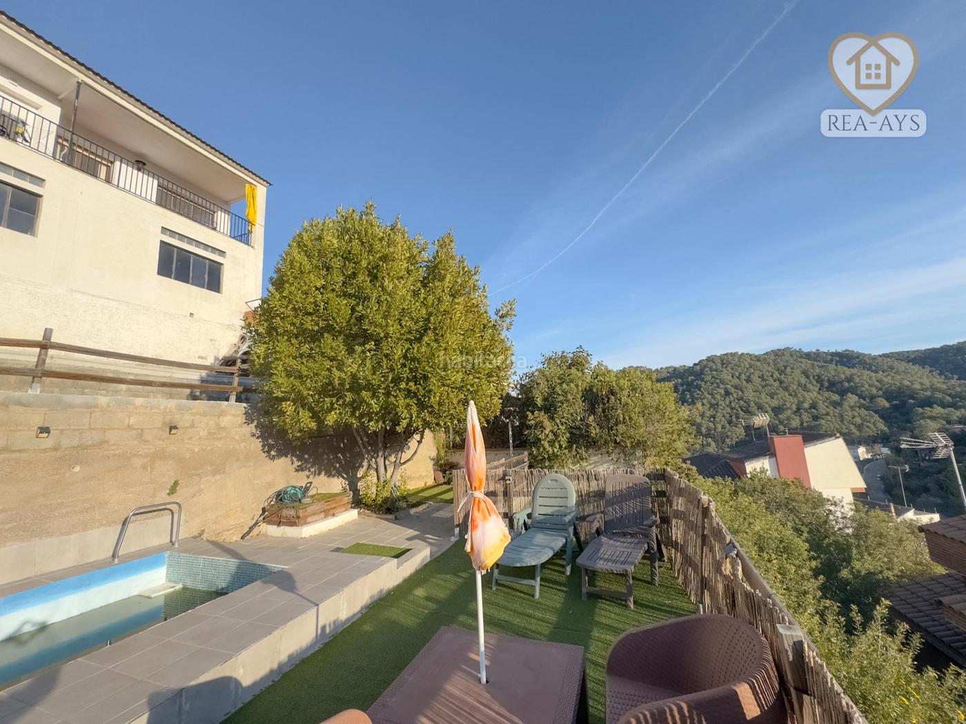 Piscina, zona de barbacoa y terreno en bancales para disfrutar al máximo del aire libre.