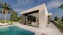 Las villas de obra nueva de una sola planta tienen 3 dormitorios, 2 baños, aseo, cocina americana con salón, armarios empotrados, jardín privado con piscina privada y plaza de aparcamiento.