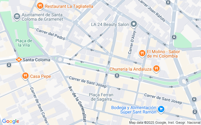 Ubicado en la zona centro, cuenta con una amplia variedad de comercios, supermercados, colegios, bancos, restaurantes, así como diversas líneas de buses hacia Barcelona, Badalona y Sant Adria de Besos. A pocos minutos de la estacion de Metro L1 Santa Coloma