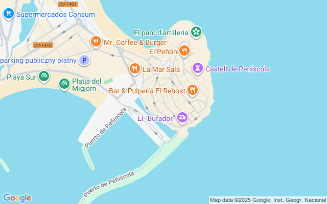 Peñíscola es un municipio bañado por el Mediterráneo, en la Comunidad Valenciana, situado en la costa norte de la provincia de Castellón y forma parte de la red Los pueblos más bonitos de España. Sus playas y calas del parque natural Sierra de Irta, son los principales atractivos turísticos, junto al Castillo Palacio de Peñíscola, también llamado Castillo del Papa Luna, construido en el siglo XIII por Los Caballeros Templarios.