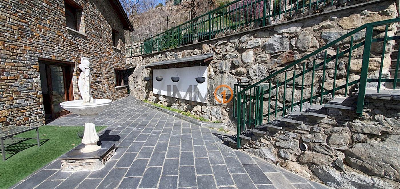Villa située sur la Carretera de Engolasters, dans un quartier résidentiel très calme avec une vue imprenable sur La Vall. D´une superficie de 350 m², elle est répartie sur 5 étages comme suit : le rez-de-chaussée (garage) peut accueillir 2 voitures et abrite le local technique de l´ascenseur et le réservoir de diesel de 1 000 l. Le 2e étage comprend actuellement 2 chambres intérieures, mais pourrait également être utilisé à d´autres fins, comme une salle de jeux, une salle de sport, etc. Il dispose également d´une grande buanderie. Le 3e étage abrite le hall d´entrée et un spacieux salon avec accès direct à un jardin de 15 m². Le 4e étage comprend une suite parentale avec placard intégré, une grande cuisine séparée, un grand salon-salle à manger avec cheminée et accès direct à une terrasse de 60 m² et à un grand jardin de 300 m², ainsi qu´une salle de bains pour invités. Le 5e étage abrite 3 chambres doubles (dont 1 en suite) et 2 salles de bains complètes. La villa dispose d´un ascenseur et d´une chaudière indépendante. Une option de location-achat est disponible.
