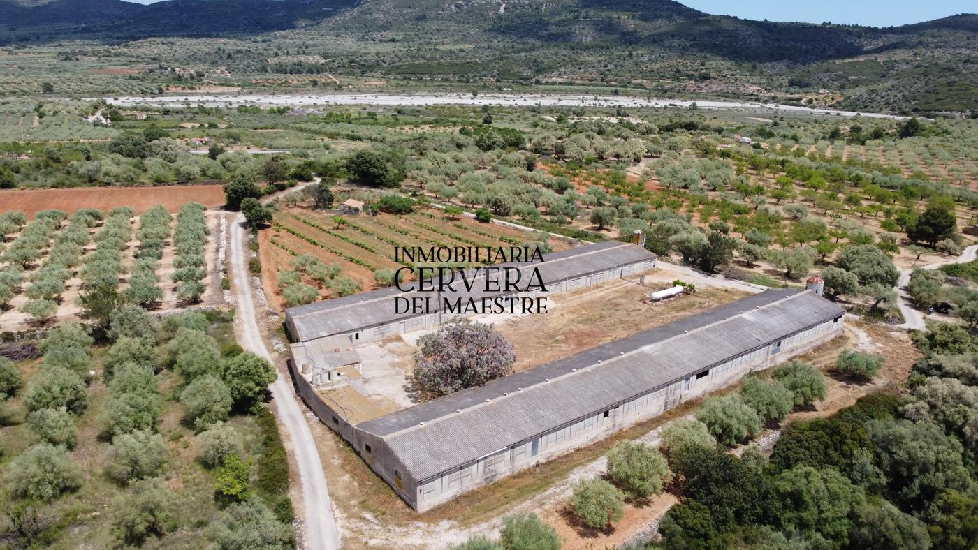 Magnifica propiedad para diversos usos. Finca rústica de 12.000m2 con una construcción de 3.000m2. La finca se sitúa en el término municipal de Cervera del Maestre. Cuenta con un viñedo que está en plena producción, así como olivos y árboles frutales. Al lado está la edificación de dos naves de 1.200m2 cada una y en medio de éstas una vivienda. La finca cuenta con recursos hídricos a través de dos pozos situados en la finca, en uno de los pozos hay instalado un molino de viento para extraer el agua, y con posibilidad de almacenamiento gracias a una cisterna de 1 millón de litros de agua. Además, la finca dispone de un depósito de almacenamiento de gas natural. La edificación de la finca está totalmente vallada. Existe la posibilidad de conexión eléctrica por la proximidad de los postes (50 metros). La propiedad dispone de planos para reformar la vivienda.