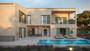 El plano incluye un chalet de dos plantas con una gran superficie de unos 410m2. Cuenta con 3 dormitorios, una piscina privada, un gimnasio, una oficina, un jardín, terrazas y un garaje con capacidad para 2 coches.