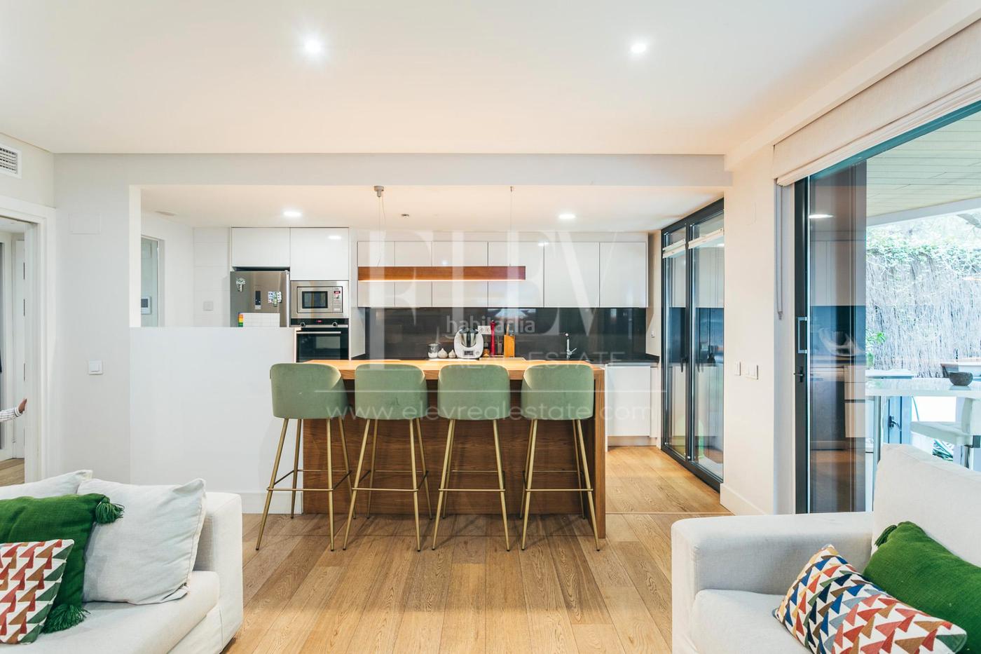 Al acceder, encontramos una elegante zona de recibo con armario empotrado que distribuye las diferentes estancias, separando la zona de día de la zona de descanso. La zona principal integra una moderna cocina abierta al salón-comedor, con salida directa al espectacular jardín. Los dormitorios tienen vistas al jardín, lo que aporta gran luminosidad y continuidad visual.