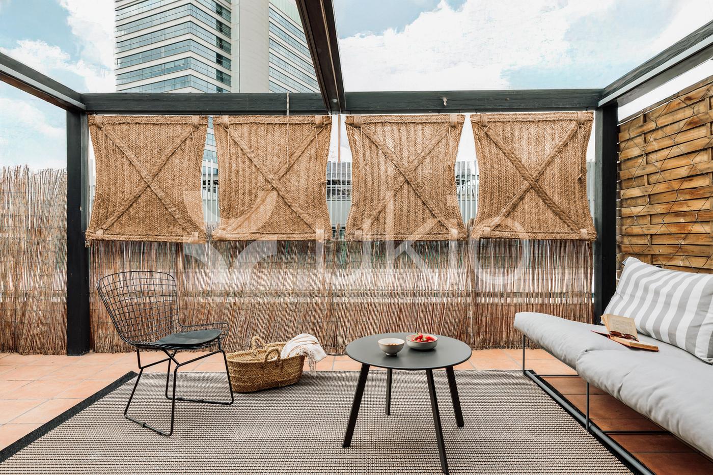Quemú, amplio y luminoso apartamento de 133 metros cuadrados ubicado en Nova Esquerra de Eixample de Barcelona, incluye dos dormitorios y dos cuartos de baño, además de ofrecer una extensa terraza exterior de 48 metros cuadrados y accesible tanto desde la cocina como desde la zona de estar interior.