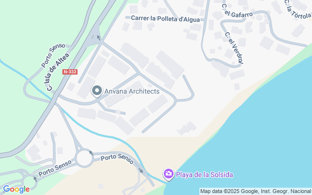 Próximo a Portosenso, chiringuito y club de kayak y cala de playa La Solsida.