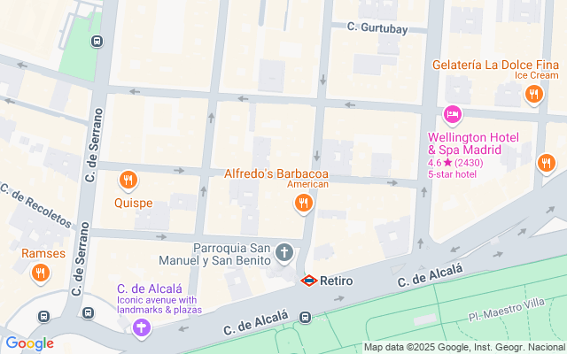 A escasos metros de el parque de El Retiro, Puerta de Alcalá, calle Serrano. Muy próximo al metro Retiro (L2) y numerosas paradas de autobús.