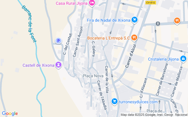 Jijona es un Municipio situado en el interior de la provincia de Alicante, a sólo 25 km y unos 20 minutos en coche del centro de Alicante y las playas de Campello o San Juan. Rodeada de conocidos municipios de la sierra alicantina, como Tibi o Alcoy. Conocida internacionalmente como el pueblo del turrón y el helado. Paraje incomparable donde el tiempo se detiene, con rutas y senderos para los amantes de la naturaleza.