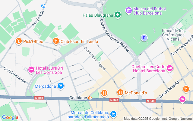 - Ubicación: Ubicado on La Maternitat i Sant Ramon (Les Corts) en Barcelona con una variedad de lugares para cenar, tiendas esenciales y cosas que hacer, con fácil acceso al transporte público.