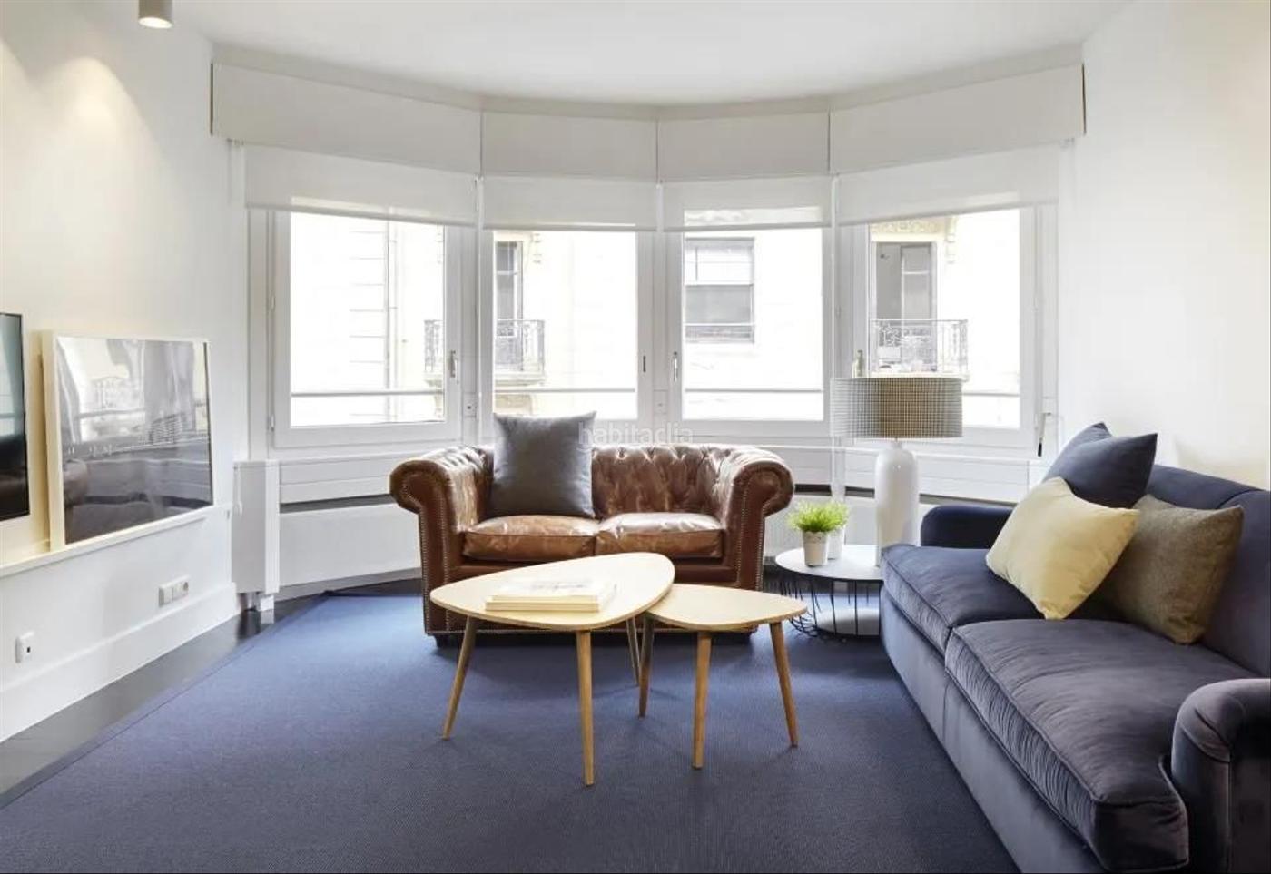 Dispone de sala de estar luminosa con sofá cama, y comedor, con cuatro ventanas a la calle Usandizaga, y vistas laterales al río.