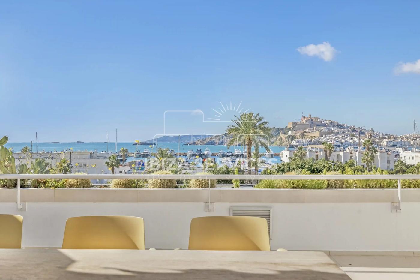 En una ubicación insuperable, perfectamente posicionado en el paseo marítimo de Paseo Marítimo. Disfrute de vistas impresionantes del mar, el puerto y la Ciudad Vieja, que se extienden hasta la isla de Formentera, de día y de noche. A solo unos minutos a pie de la playa de Talamanca.