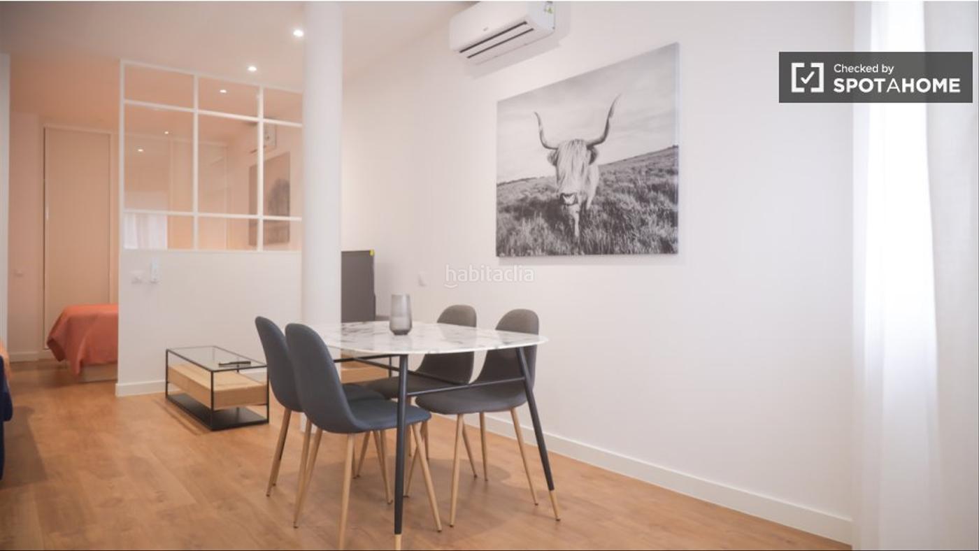 Spotahome presenta este moderno estudio en alquiler en Zofío, Madrid. Este estudio es exterior, está completamente amueblado y cuenta con aire acondicionado individual, lavadora y cocina totalmente equipada con horno y lavavajillas. El wifi está incluido, lo que lo convierte en una excelente opción para mantenerse conectado. La propiedad ha sido verificada por Spotahome, lo que garantiza la tranquilidad de los inquilinos. Ideal para profesionales, parejas y familias. Se admiten mascotas con restricciones.