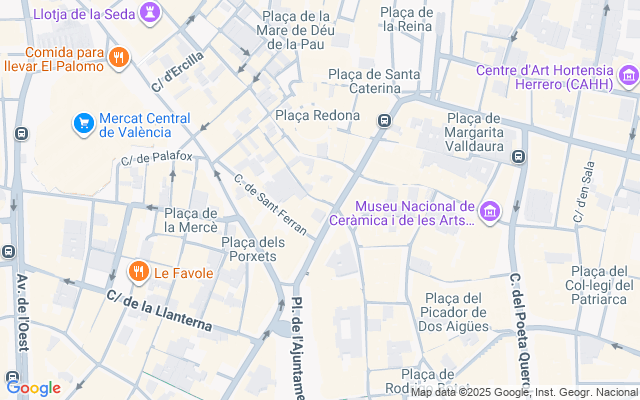 Su ubicación es inmejorable: rodeada de servicios, colegios, farmacias, tiendas y restaurantes, y a tan solo un minuto a pie del Mercado Central, la Plaza del Ayuntamiento y la Catedral de Valencia.