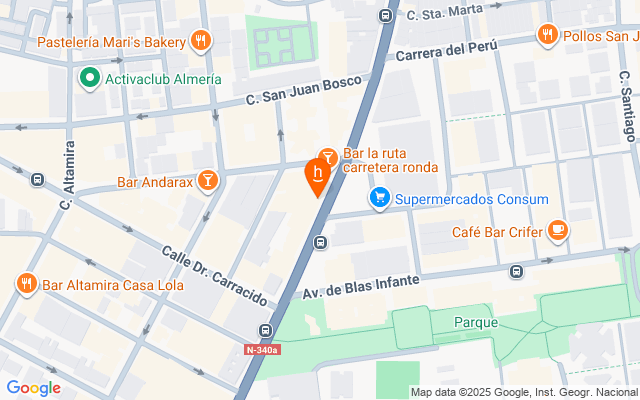Consta de una buena ubicación, ya que está próximo, frente a Los Juzgados de Almería y a supermercados como Consum, Día, comercios, peluquerías, restaurantes, paradas de bus, a universidad, colegios, etc.