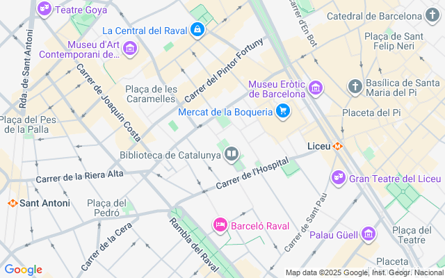Explore el Raval, conocido por su rica historia y sus lugares de interés cultural. Entre las atracciones cercanas se incluyen A Margarida Xirgu y Busto do Actor Iscle Soler, que ofrecen experiencias artísticas únicas. También encontrará el Palau Moja y la Parroquia de San Agustín, de gran belleza arquitectónica. La Real Academia de Ciencias y Artes y la Mezquita Tariq reflejan la diversidad de la zona. Con lugares de renombre como la Plaza de Vicenç Martorell y la Plaza del Pi, disfrute del dinámico ambiente de esta joya barcelonesa.