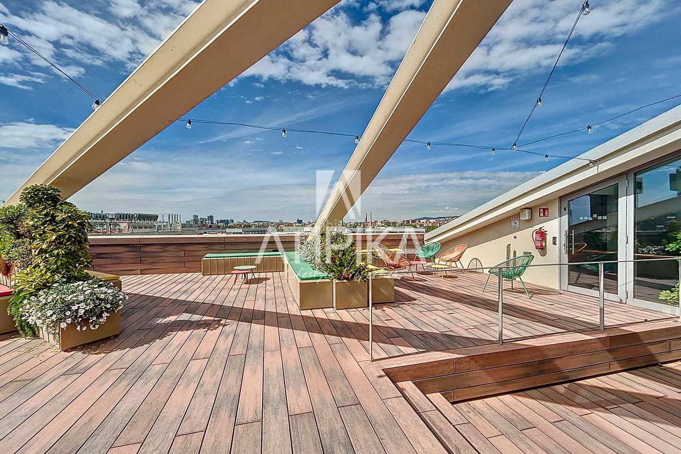 Dispone de un pequeño office, trastero en la misma finca y 4 baños y aseos completos dentro de la oficina. Los acabados incluyen moqueta, techo registrable, doble acristalamiento y sistema de climatización frío/calor por conductos. La oficina está equipada con fibra óptica, red informática, preinstalación de alarma y contadores individuales. Ubicada en una zona moderna y bien comunicada, junto al puerto deportivo y nuevos desarrollos residenciales y comerciales, se encuentra a pocos pasos del metro (L2 Gorg), tranvía, autobuses y Cercanías.