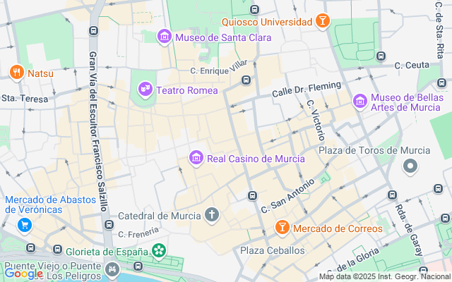 Está junto a la Iglesia San Lorenzo y la calle de Correos, en una zona indudable de ocio de la ciudad de Murcia.