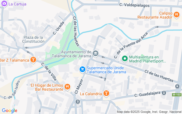 Se encuentra en la calle mayor de Talamanca de Jarama, la cual es peatonal los fines de semana.