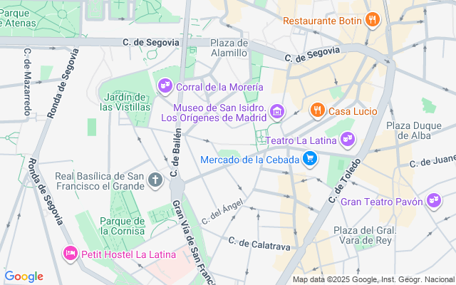 Sobre la ubicación del piso es privilegiada, ya que se encuentra en una zona muy tranquila, junto al Palacio Real, al metro de la Latina y al de Puerta de Toledo. Paradas de taxis y diferentes líneas de autobús paran enfrente de la vivienda. El Acceso a la M-30 Y M-40 es muy rápido. Alrededor del piso se encuentran varios centros comerciales (El Corte Inglés, Mercado de la Cebada), colegios, (colegio de economistas de Madrid, CEIP San Ildefonso, colegio Madres Concepcionista Princesa) guarderías, teatros ( teatro La Latina) museos, parques (Jardines del Cabo Noval, Rosaleda del parque Oeste, Parque Atenas, Templo de Debod ) farmacias, hospitales (hospital de la Venerable Orden Tercera de San Francisco de Asís) y variedad de restaurantes.